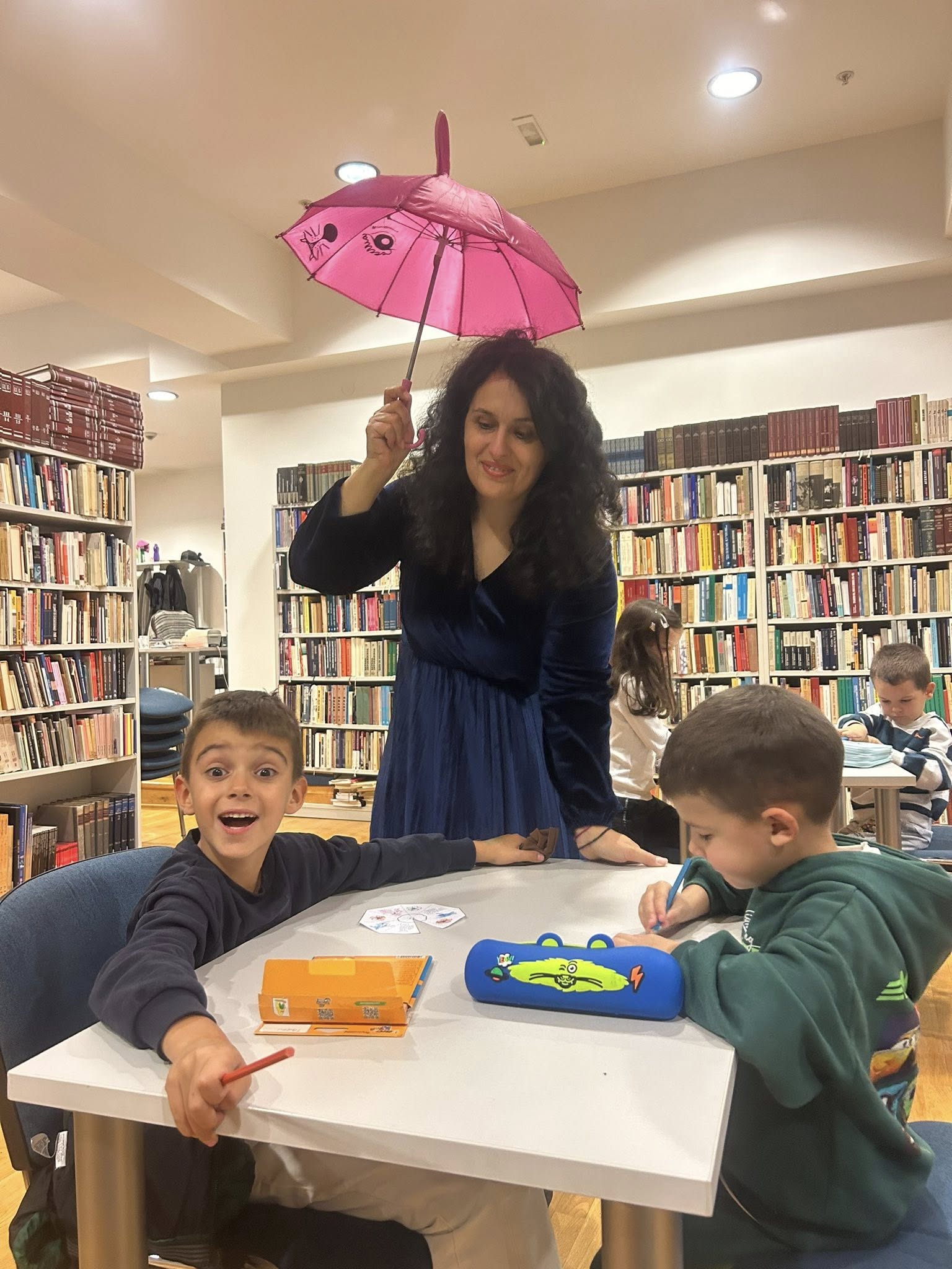 У оквиру редовних програмских активности Библиотеке, одржана је креативна радионица инспирисана причом о Кишку – шареном кишобрану који се на „пљус” склапа као палачинка, а затим, кап по кап, учи да се не плаши кише. Радионица је окупила 15 малишана, а атмосфера је од самог почетка била разиграна, знатижељна и интерактивна.
