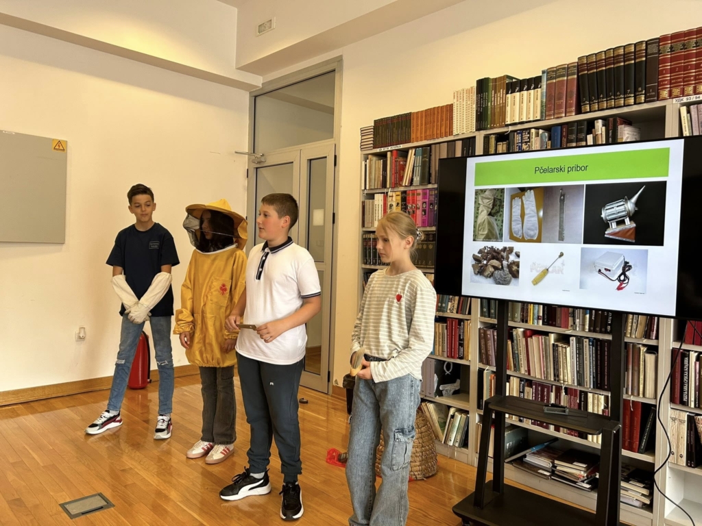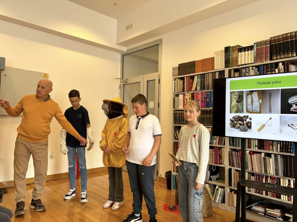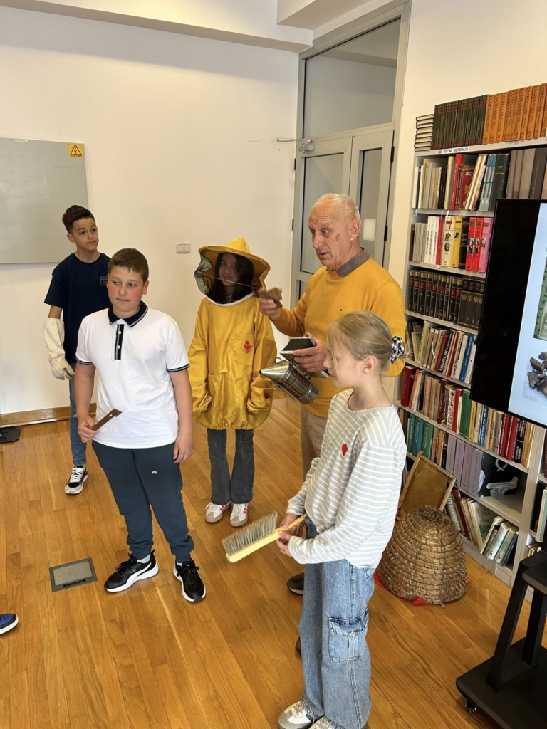 Посебно интересовање изазвао је дио предавања о пчеларском прибору и опреми: димилици, заштитном одјелу, пчеларском ножу, центрифуги за врцање меда и типовима кошница. Ученици су пажљиво слушали и активно учествовали у разговору.
