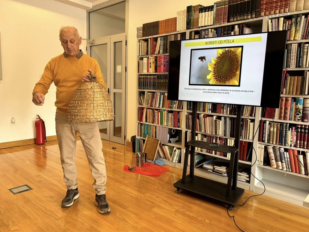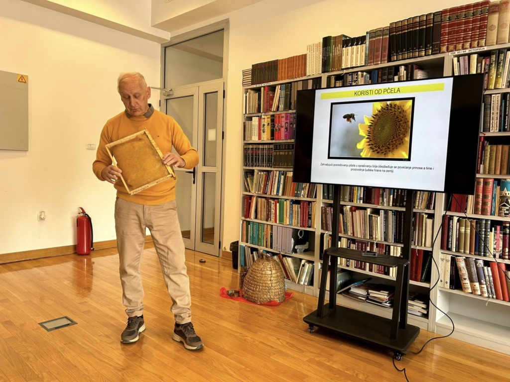 Професор Голубовић је на једноставан и занимљив начин ученицима приближио свијет пчела, њихову улогу у природи, значај за људе, као и основне појмове из пчеларства. Посебно је нагласио колико је рад пчела важан за опрашивање биљака, производњу хране и одржавање природне равнотеже. Ученици су сазнали како пчеле живе у заједници, коју улогу имају матица, трутови и радилице, како настаје мед, шта је пчелиње легло, како изгледа прољећни развој заједнице и шта се дешава током зиме. Било је ријечи и о природном процесу ројења пчела, као начину ширења заједница, али и о болестима које пријете пчелама и значају њиховог благовременог откривања и третмана.