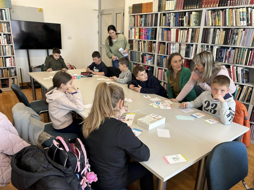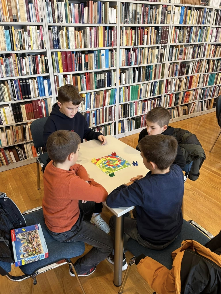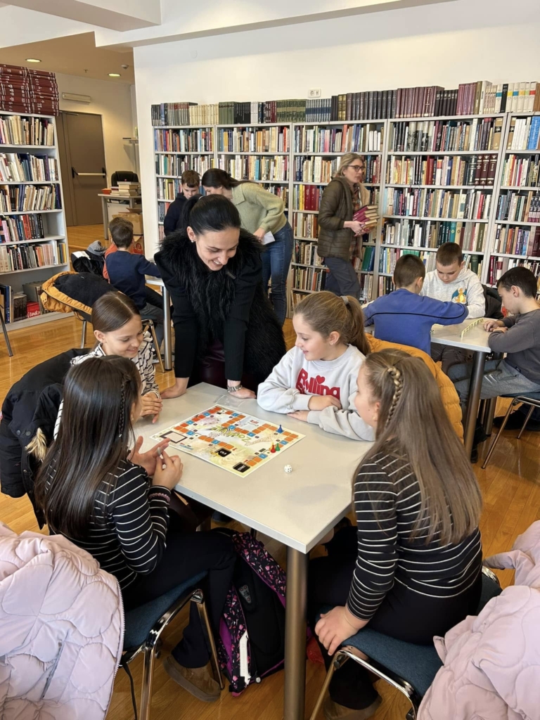 Данас су гости Народне библиотеке „Стеван Самарџић“ били ученици IV-1 и IV-2 разреда ОШ „Салко Аљковић“ са професорицама разредне наставе Драганом Цупаром и Денисом Пјевовић. Данашње дружење смо посветили друштвеним играма као што су Не љути се човјече, Домине, Игра меморије, Зоо квиз, Игра ријечима, Ребуси.