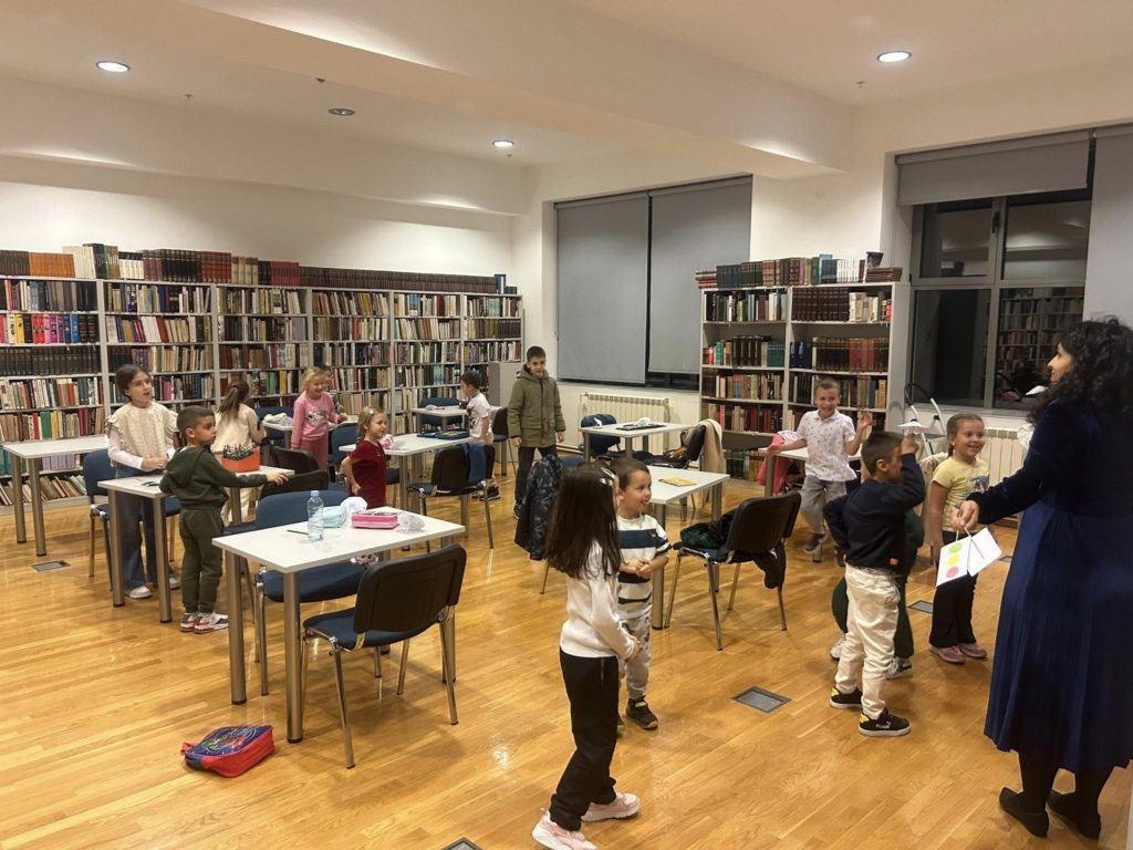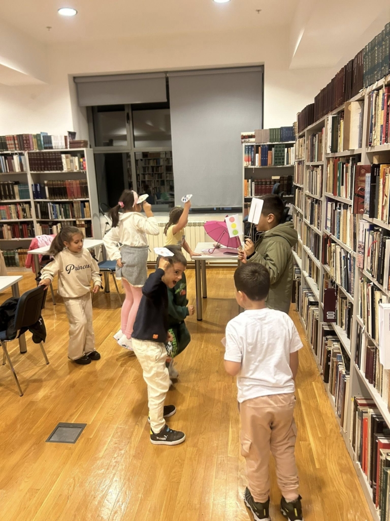 У оквиру редовних програмских активности Библиотеке, одржана је креативна радионица инспирисана причом о Кишку – шареном кишобрану који се на „пљус” склапа као палачинка, а затим, кап по кап, учи да се не плаши кише. Радионица је окупила 15 малишана, а атмосфера је од самог почетка била разиграна, знатижељна и интерактивна.