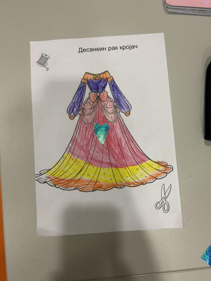 Креативни дио радионице омогућио је дјеци да своје тумачење приче претворе у конкретан рад, скројена су одјела и хаљине инспирисане текстом. Поред тога, кроз тематске игре и интерактивне активности, учесници су кроз покрет и визуелни израз доживјели причу, чиме је радионица добила забаван и карактер, спајајући учење и игру.